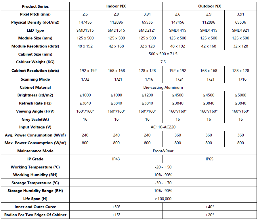 (3)Inner and outer radian of cabinet is ±30° for indoor series and ±40° for outdoor series .